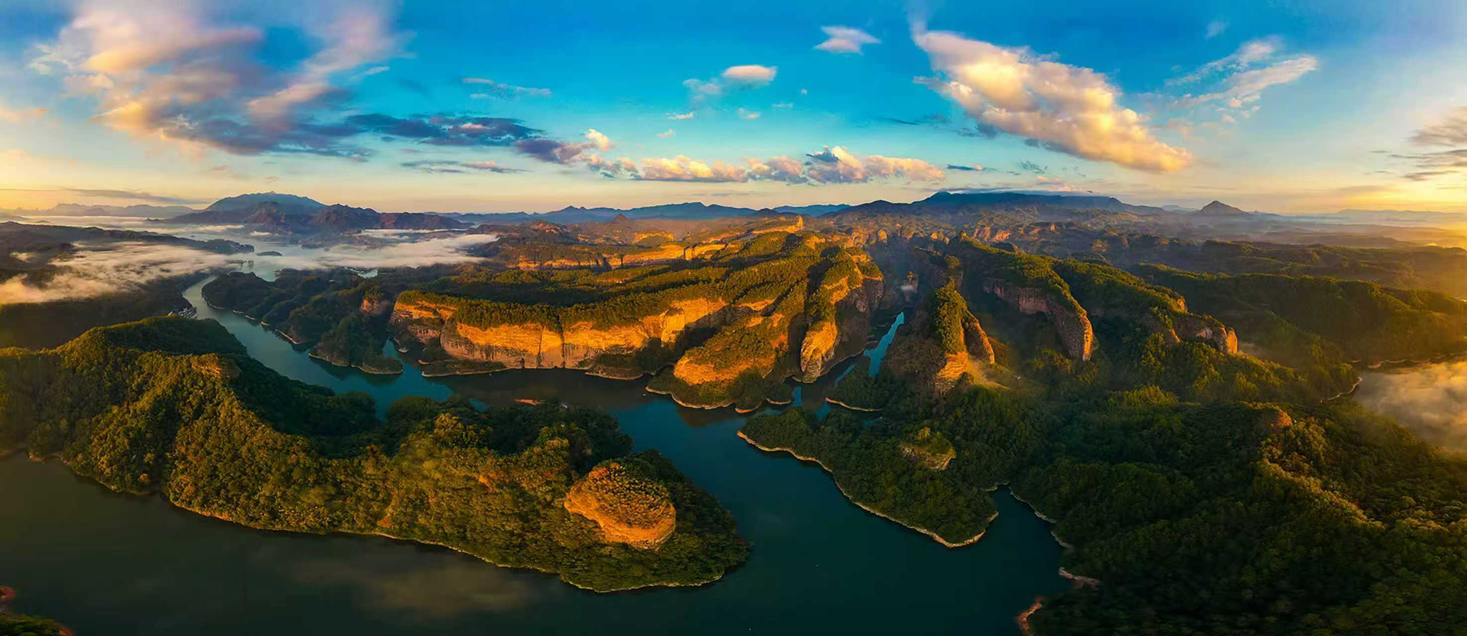 early-stage Danxia landform, Taining is hailed as “a place where China’s story of Danxia landform begins.” The county boasts a number of world-renowned tourist attractions, such as a World Natural Heritage Site, a UNESCO Global Geopark, and a National 5A-level Scenic Area. It has developed ten major scenic areas, including the Great Golden Lake, Shangqing Stream, and Jiulong Pool, pioneering the fifth nationwide model for county-level tourism development known as the “Taining Path.”