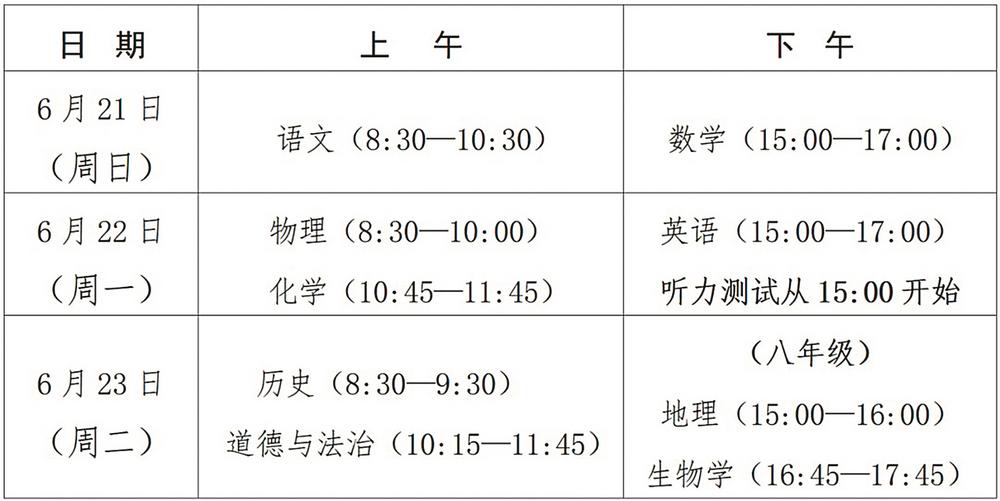 根据通知,2026年中考省级统一考试安排在6月21日—23日举行(具体科目考试时间安排见上表)。(记者 蒋丰蔓)