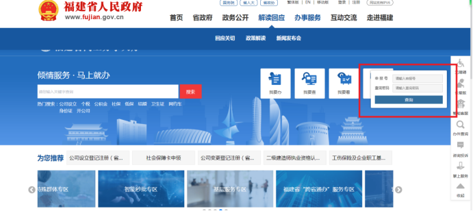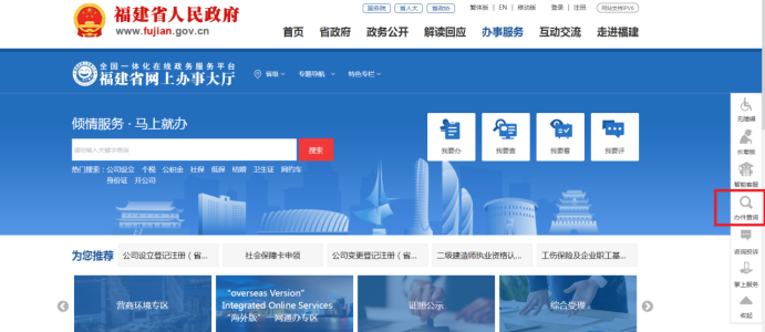 1.通过福建省网上办事大厅右侧,点击“办件查询”;