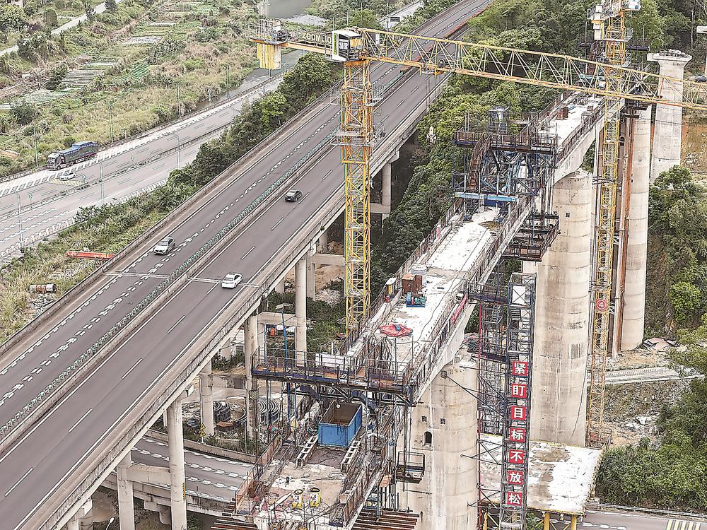 作为福州港口后方铁路全线最长、墩身最高、结构最复杂的桥梁,敖江特大桥全长约1591米,主墩高达60.1米,特殊结构占比达57%,先后上跨北二通道、敖江、S308省道、欢乐大道、贵安收费站互通等。
