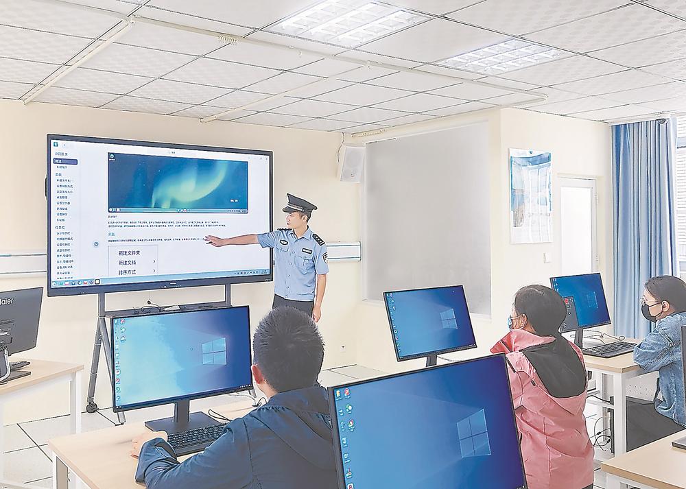 福建省司法戒毒医院民警向学生普及毒品成瘾的危害性。