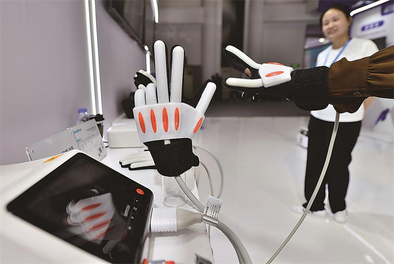 辅助康复运动机器人吸引参观者体验。张斌 摄