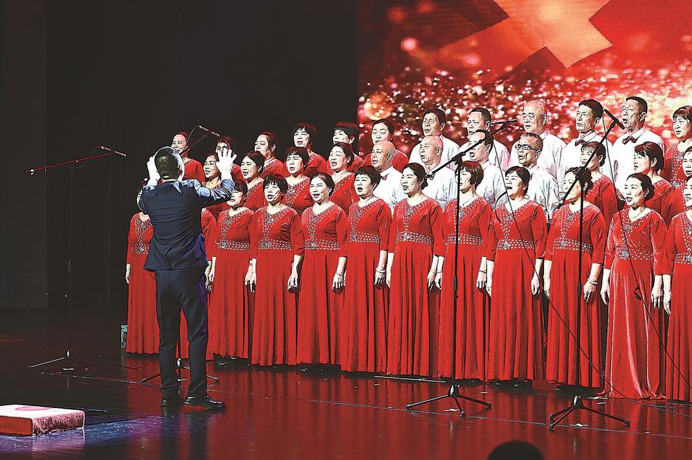 聚光灯下,56岁的村民薛金珠和40多名乡亲身着统一服装,大声唱着《没有共产党就没有新中国》。她们大多是平日里围着灶台、农田打转的家庭主妇,此刻满脸兴奋与紧张。“这歌唱得真带劲,正能量满满!”走下舞台的薛金珠感觉畅快淋漓,仿佛体验了一回人生的“高光时刻”。