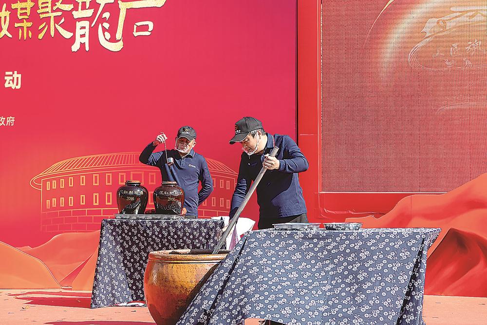 酿酒师在进行沉缸酒古法酿造技艺活态展示。