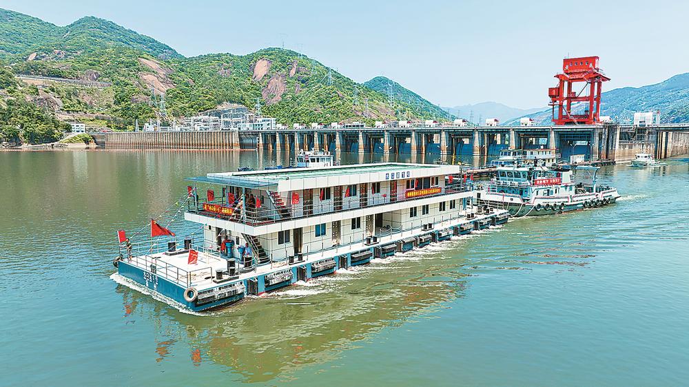 日前,在海事部门海巡艇的护航下,闽江水口航运枢纽待闸停泊区钢制趸船抵达停泊点,标志着我省首个“内河水上综合服务区”进入实质性建设阶段。