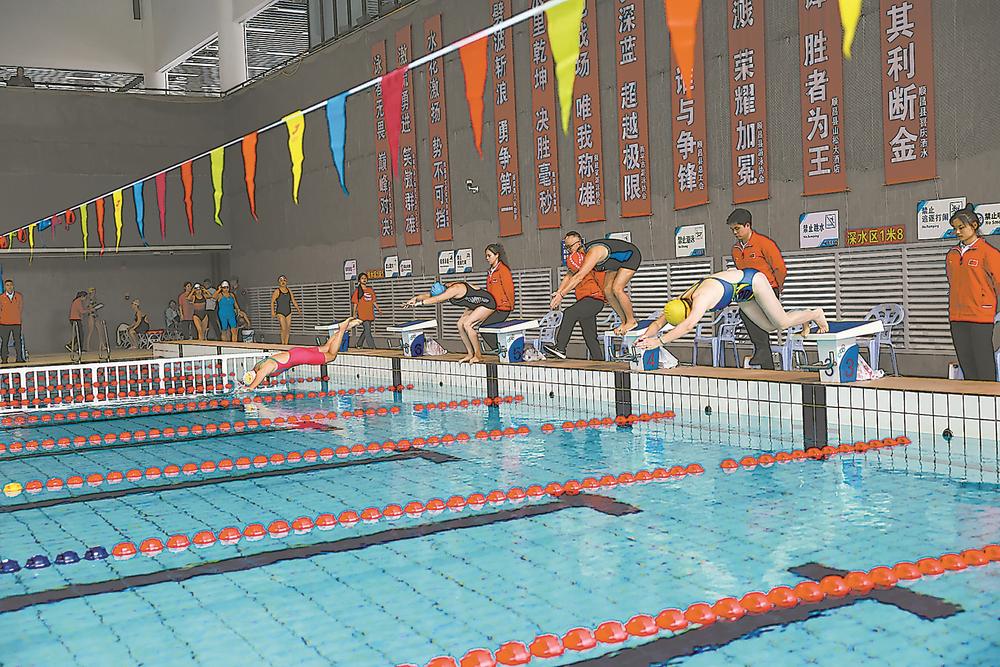 8日至9日,福建省“三松杯”成人游泳锦标赛在顺昌体育中心游泳馆举行。本次赛事是我省成人游泳领域的重要赛事,也是广大游泳爱好者展示技能、切磋交流的重要平台。全省共有27支队伍384名选手参赛。图为比赛现场。(通讯员 徐华山 姜立 摄)