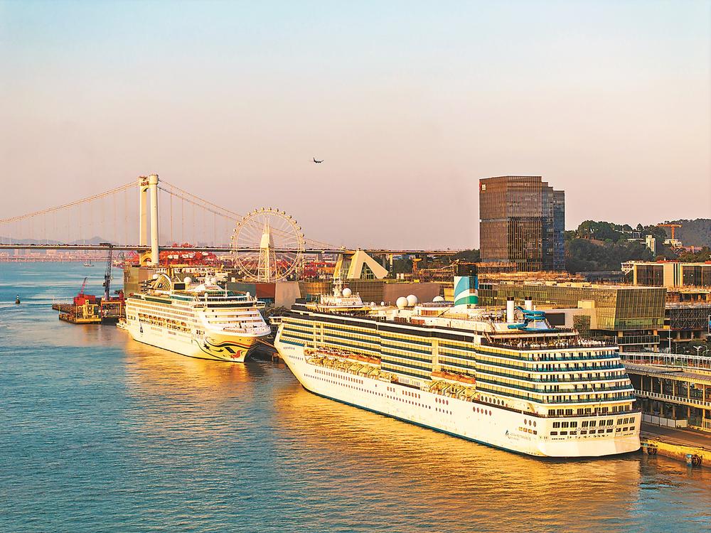 8日,“爱达·地中海”号与“领航星”号同日靠泊厦门国际邮轮母港。这是该港今年迎来的第三次双轮同靠。