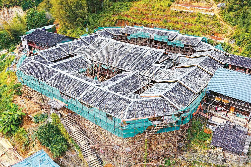 目前,位于永泰县霞拔乡锦安村的全国文保单位积善堂正在进行修缮。这座土木结构的庄寨兴建于1905年,占地面积2319.23平方米,共计99间房,由当地靠茶油发家的黄孟钢三子黄学猷所建。积善堂与谷贻堂、绍安庄并称黄氏“父子三庄寨”,入选《2022世界建筑文物观察名录》,是全国唯一入选的建筑文物。据了解,积善堂将于明年上半年完成修缮。(记者 游庆辉 陈欢欢 摄)