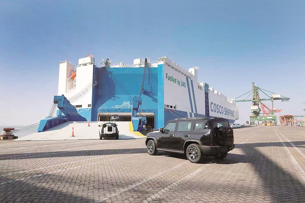 1月8日,3889辆整车搭乘“贞观口”滚装轮从江阴港扬帆出海,将穿越马六甲海峡、波斯湾,于1月下旬依次抵达阿联酋、卡塔尔和伊拉克等中东国家。记者从福清边检站获悉,2025年福州港新开通4条“一带一路”“金砖国家”滚装直航航线,累计开出滚装轮20航次、出口整车1.96万辆,出口整车同比增长29.8%。(薛有雄 陈欢欢 摄)