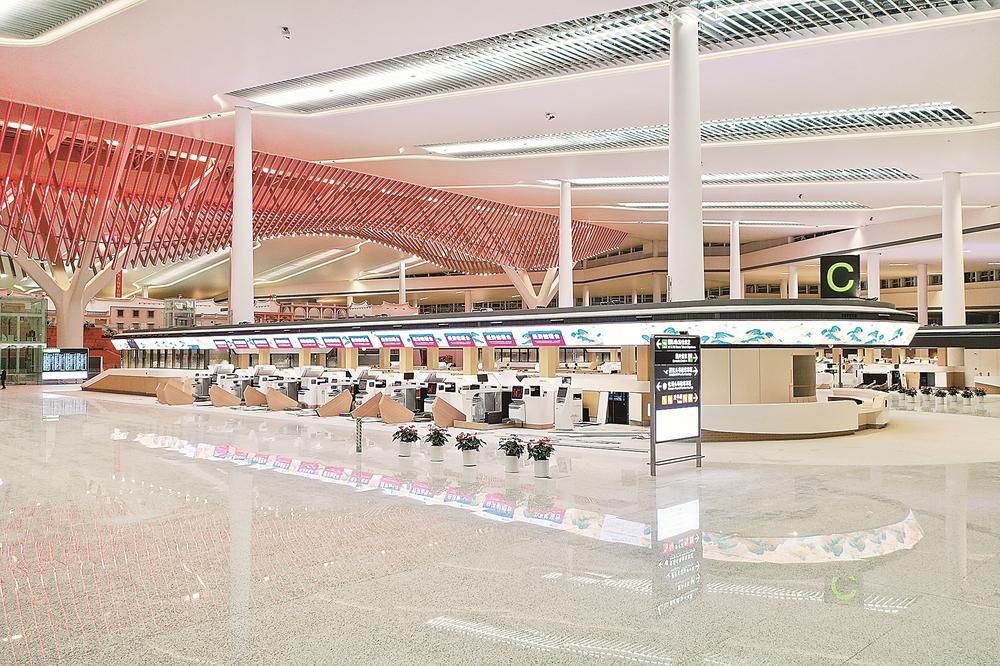 20日,记者从厦门翔安国际机场建设指挥部获悉,当前机场航站楼精装修工程已完工,55万平方米的航站楼融入闽南大厝元素,双坡三重檐屋顶尽显地域特色,内部功能区域划分清晰,为后续运营奠定了基础。