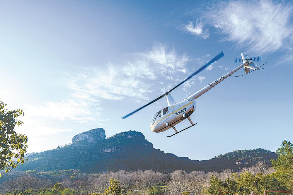 2月20日,武夷山市直升机低空游览项目人气旺盛。该项目于2026年春节期间正式运营,在大王峰下为游客提供空中观景服务。(陈天博 摄)