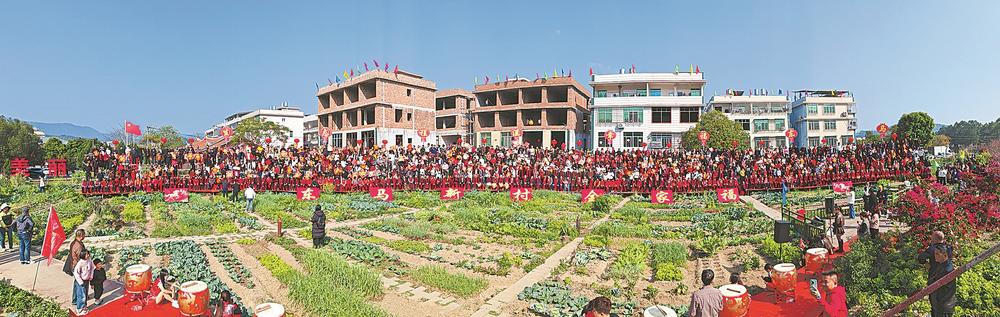 2月19日,漳州市龙海区程溪镇东马村1400多名村民欢聚一堂拍摄“全村福”。今年是东马村因存在地质灾害隐患,整村从海拔900米的大山上搬迁至镇区附近20周年,村民们与回乡休假的军人、学子和在外工作的乡亲同框,见证东马整村搬迁20载的蝶变,留住团圆的美好记忆。(陈建和 摄)