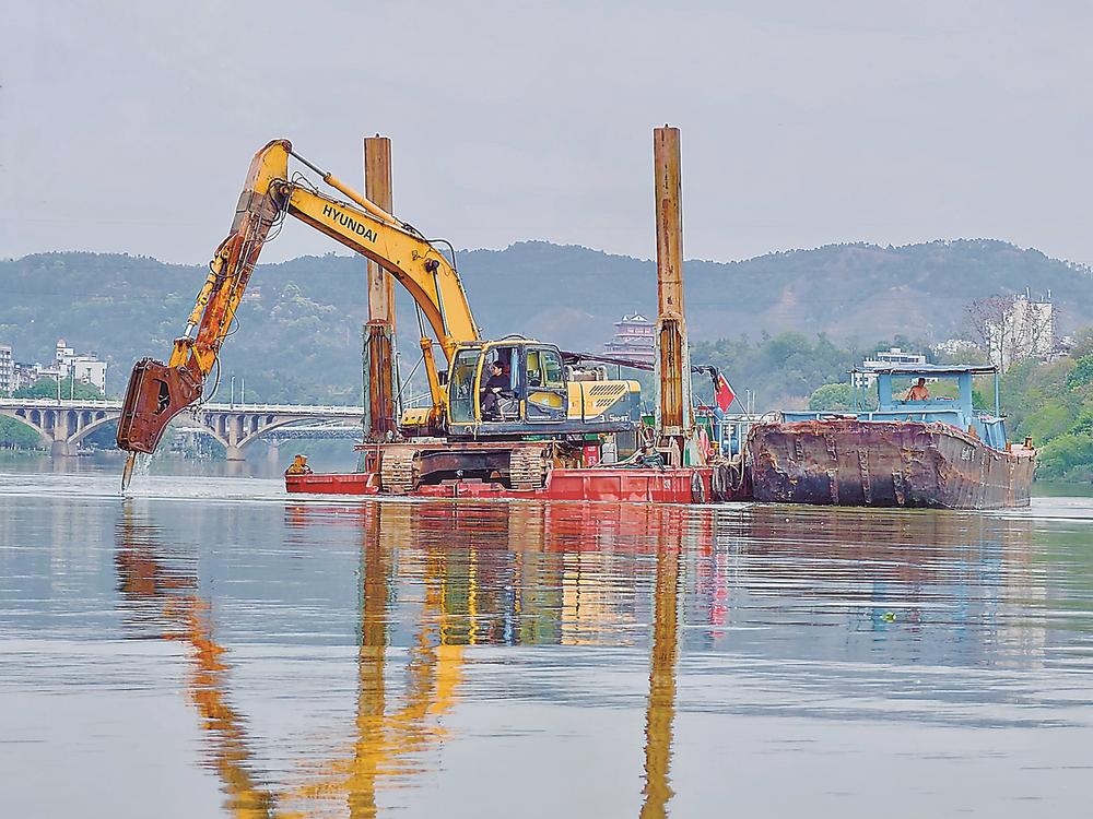 3月27日,沙溪河沙县河段一片繁忙,工人们正积极开展清礁、疏浚作业。此次施工的闽江沙溪口至三明台江航道整治工程(二标段),旨在提升沙溪河通航条件。工程涵盖多项内容,包括对35.43km航道清礁疏浚、技改提升两座船闸等。该标段施工自2026年3月16日开始,至2027年9月30日结束。(通讯员 俞和江 摄)