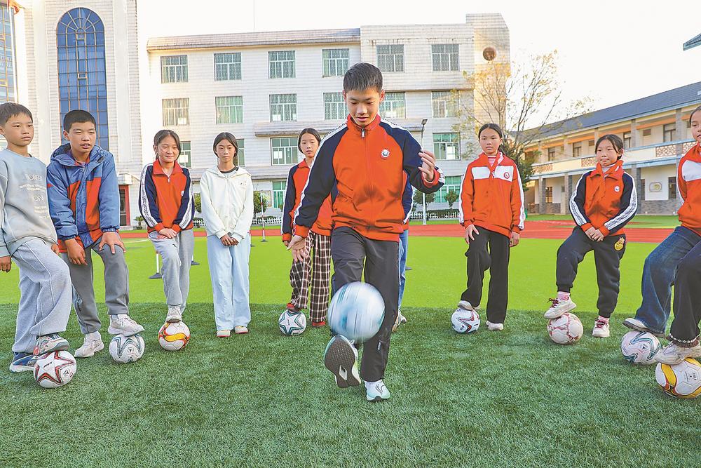 在具体实践中,学校立足学生的年龄特点,开展足球分层教学。低年级课堂以兴趣启蒙为主,通过足球小游戏、带球绕杆、趣味射门等方式,帮助学生熟悉球性、爱上足球;中年级教学聚焦基础动作,教练逐人纠正颠球、停球、传球、带球姿势,提升学生的踢球技能;高年级教学侧重战术培养,每周组织两场以上班级对抗赛,提升学生实战能力。(通讯员 赖全平 巫秋 文/图)