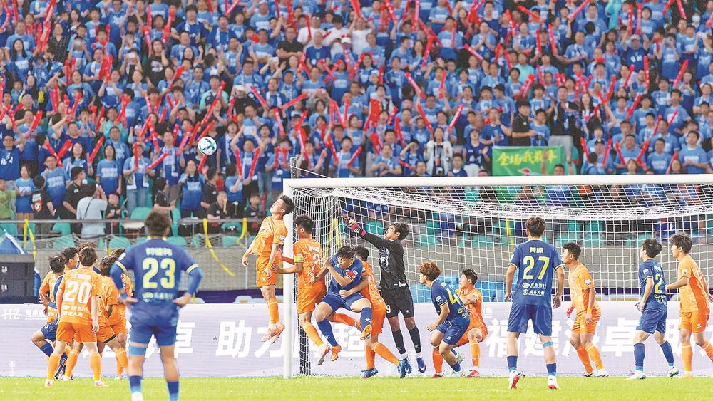 4月19日晚,2026年福建省城市足球联赛揭幕战在福州海峡奥体中心拉开帷幕。(记者 林熙 摄)
