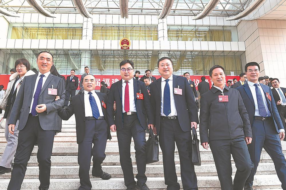 圆满完成各项议程的省政协委员信心满怀地走出福建会堂。记者 林熙 摄