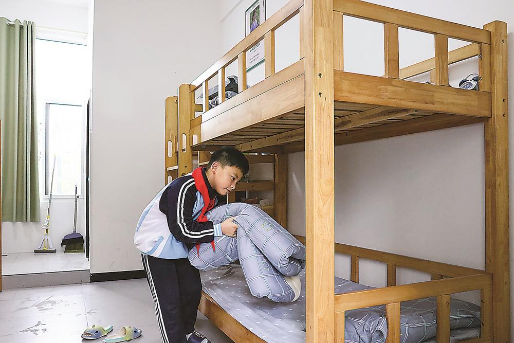 邵武市严羽小学学生在和平中心小学学习整理内务。曾子欣 摄