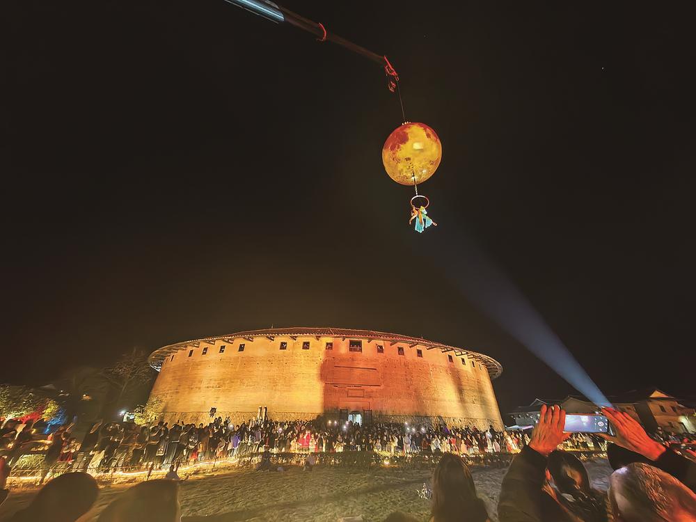 “天女散花”表演将土楼夜间现场气氛推向高潮。许鹏飞 摄