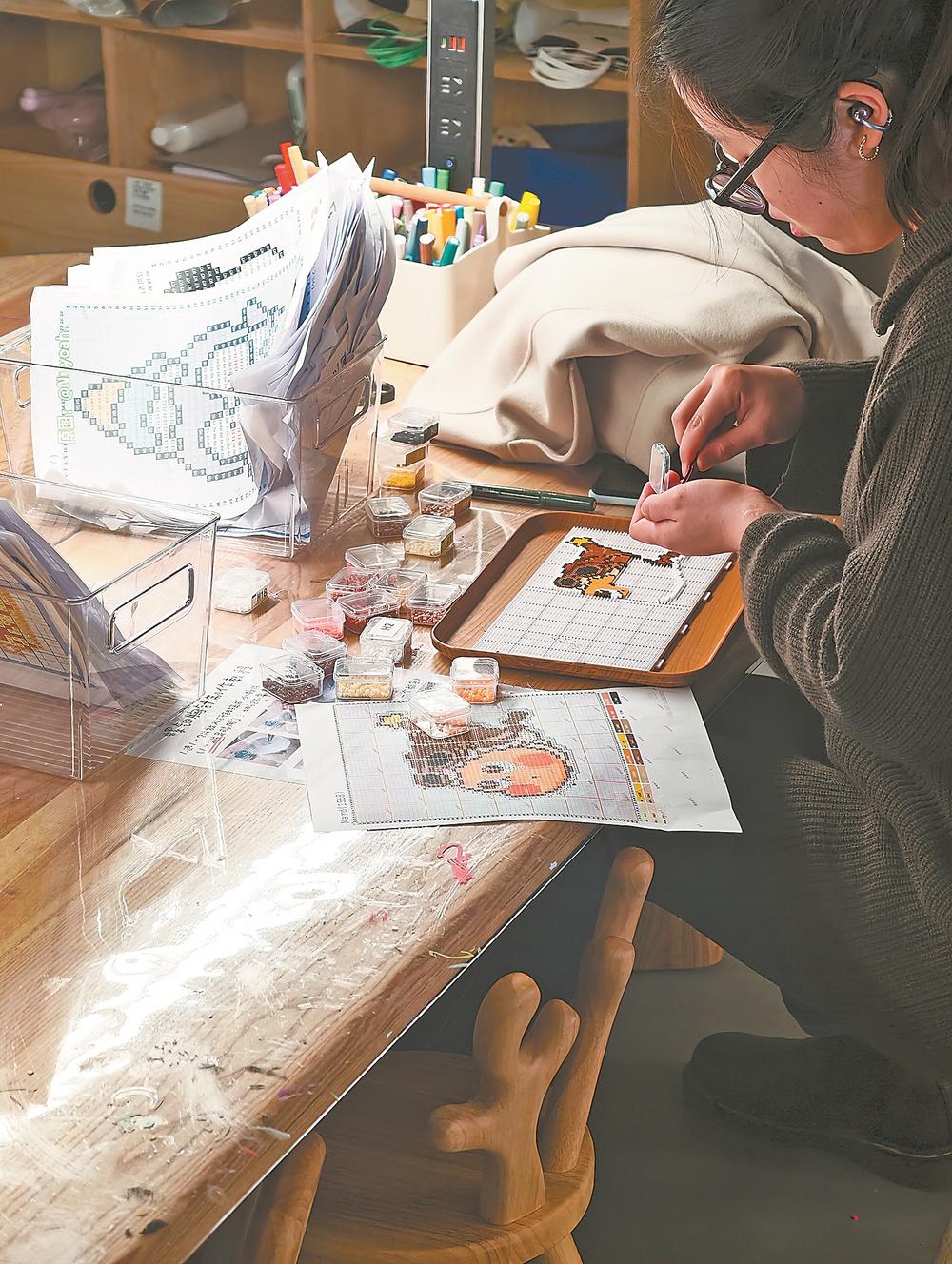唐子修深知,若要使店铺经营常青,使拼豆热度尽可能地延长,必须开发更多的新玩法以维持消费者的新鲜感。拼豆消费的长红更需要拼豆产业上、中、下游全链条的联动,原材料生产商、图纸设计方、门店服务方需共同发力。(记者 徐士媛 文/图)
