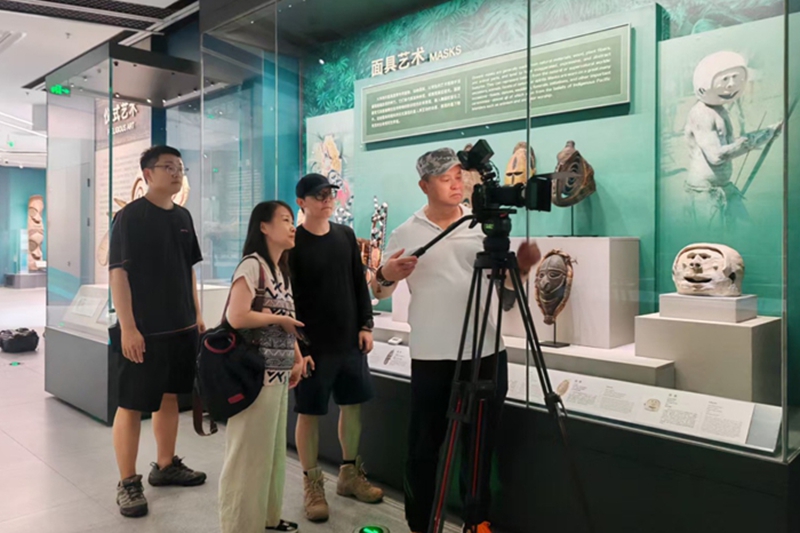 The production team films at the Keqiutou Site Museum. [Photo provided to chinadaily.com.cn]
