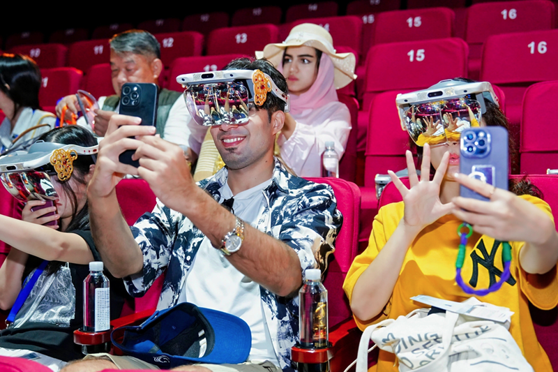 Participants watch Origin of Meizhou with AR headsets at the Mazu Film and Television City. [Photo provided to chinadaily.com.cn]