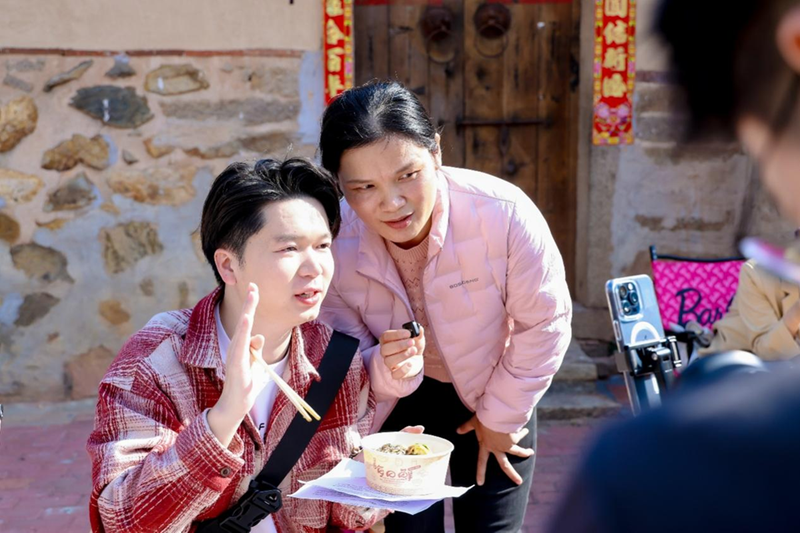 A self-media practitioner showcases the local cuisine of the Houtian community through his own lens on Dec 4. [Photo provided to chinadaily.com.cn]