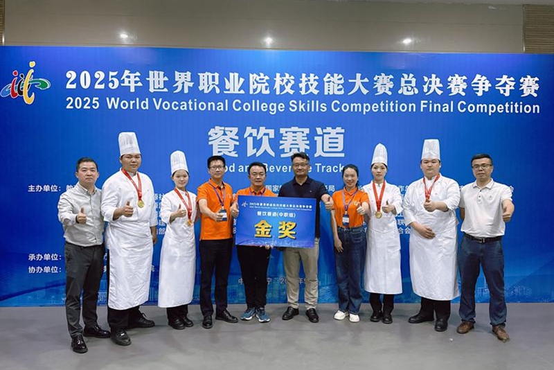Students from Fuzhou Tourism Vocational Secondary School win the gold medal in the Food and Beverage Track. [Photo provided to chinadaily.com.cn]