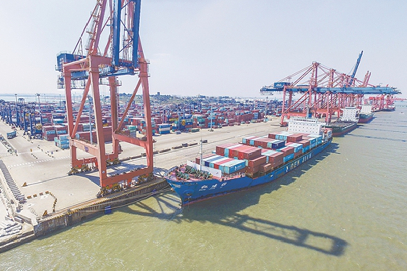A container ship fully loaded with cargo is berthed at Shihu Port. [Photo/Fujian Daily]