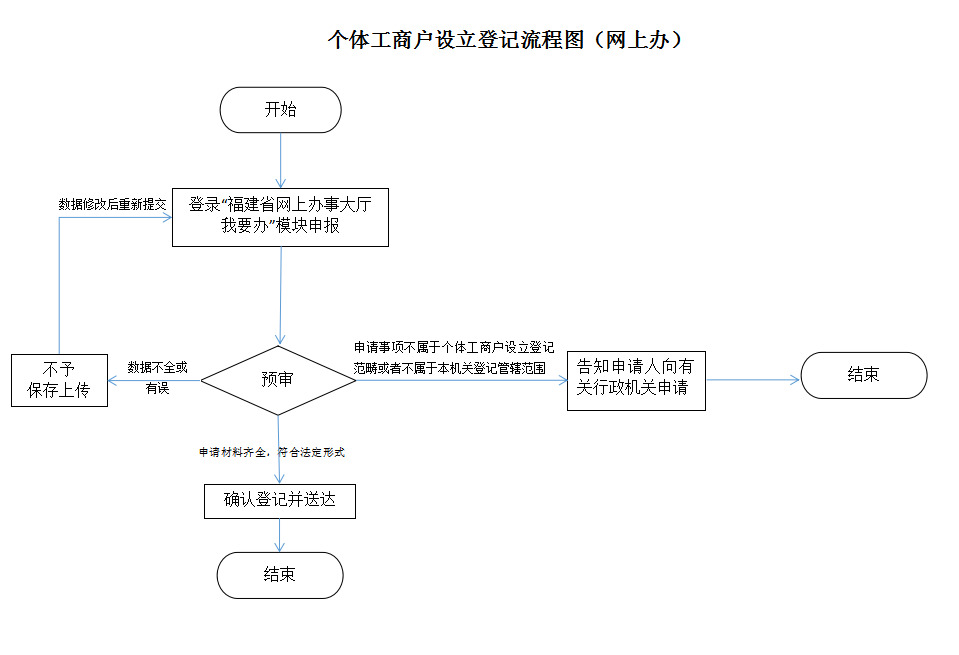 申请人可登录“福建省网上办事大厅”,登录后在搜索框内直接输入“个体工商户设立登记”选择对应行使层级在线办理即可。