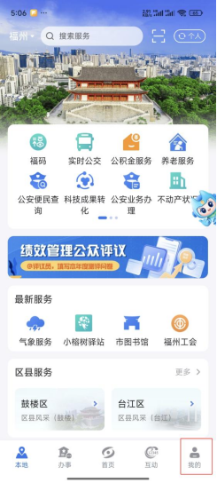 1.登录“闽政通”APP,点击“办事”,跳转至办事大厅界面。