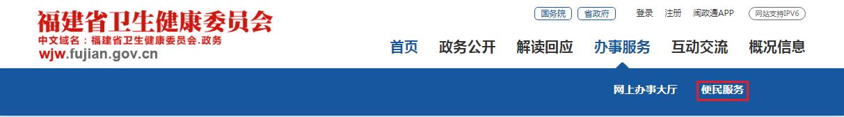 地址:福州市鼓楼区鼓屏路61号省卫健委6号楼1层政务服务中心