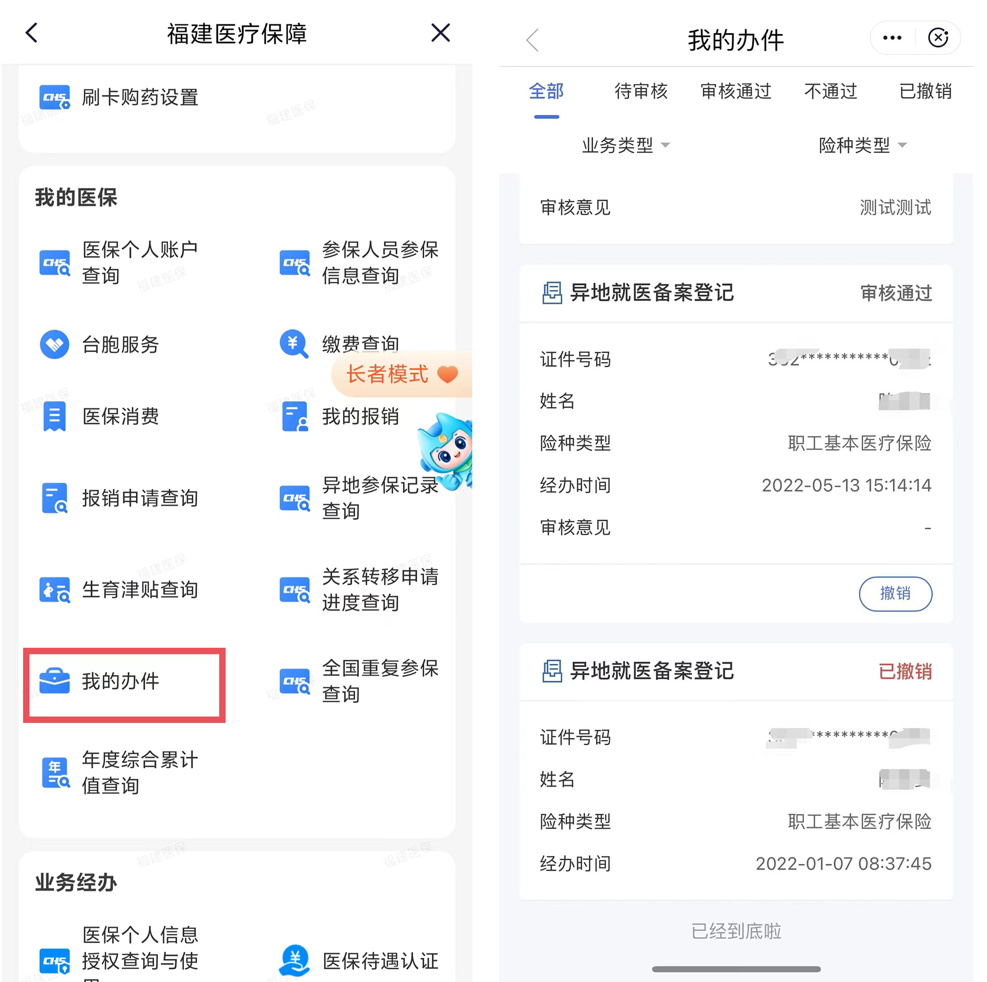 第二步,点击【我的办件】,选择异地就医备案登记,点击【撤销】,即可取消备案。