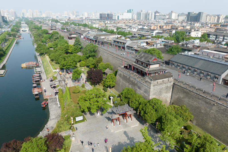 西安城墙南段(4月25日摄,无人机照片)。新华社记者 邵瑞 摄