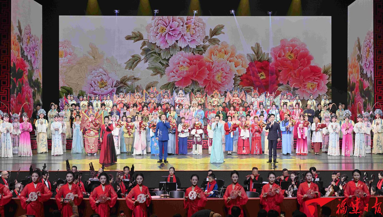 晚会充分展现了新时代八闽戏曲的气韵和风采,艺术家们的精湛表演赢得全场观众的阵阵喝彩和热烈掌声。在全体演员共唱《盛世梨园》戏歌声中,晚会圆满落幕。(记者 周琳/文 肖春道/图)