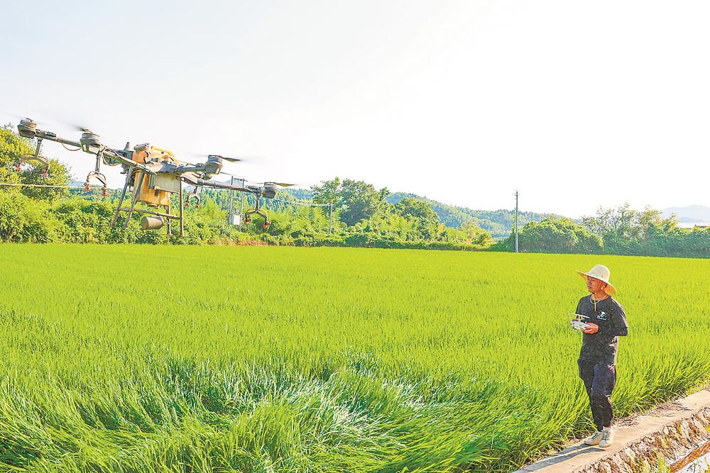 建宁县制种基地农机手正在进行飞防作业。肖开涯 摄