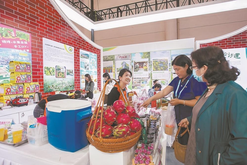 厦台农业农村融合展区内,来自翔安的火龙果吸引参观者。记者 施辰静 摄