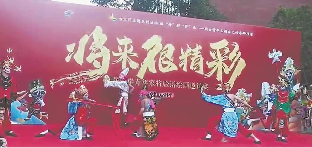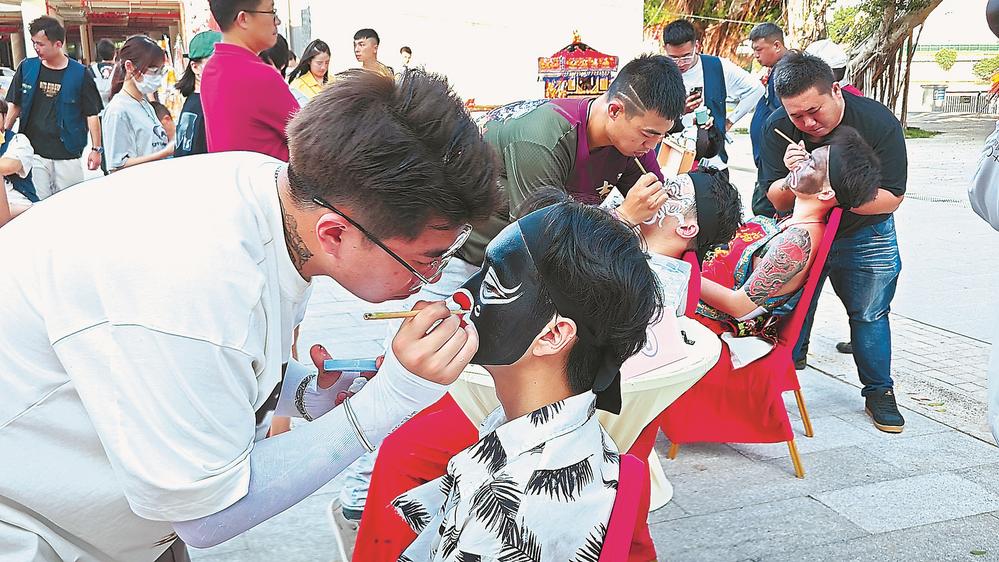 来自两岸的青年面师在现场绘制“家将”脸谱。