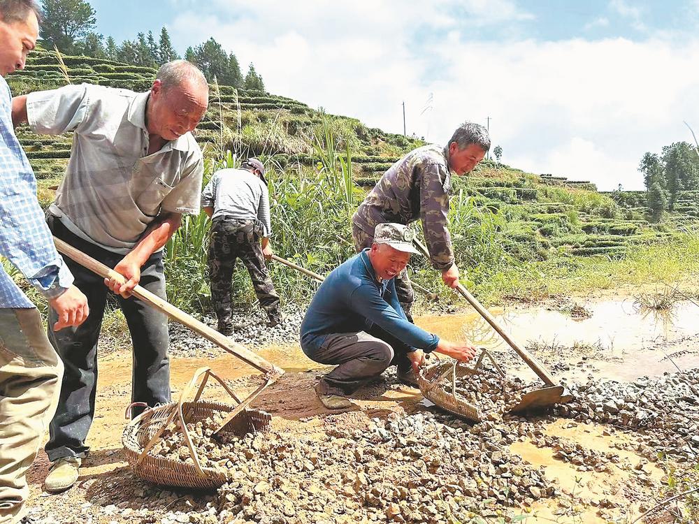 “政府出钱帮我们把机耕路挖好、沟渠做好,我们也有责任把它们维护好。”燕科村村民吴世文说。每年农历八月初一,当地一年一度的“修路节”,今年的这一天,全村群众自发组织起来,在各自片区开展义务除杂草、清沟渠、除塌方、填路基等活动,参与的村民达160多名。燕科村包村干部张志勇说,村民修的机耕路正是燕科村以做强茶产业为基础,探索“党建+茶旅融合”,依托支部领办合作社向上争取资金和项目支持,开通锥栗山和茶山的农业机耕路。