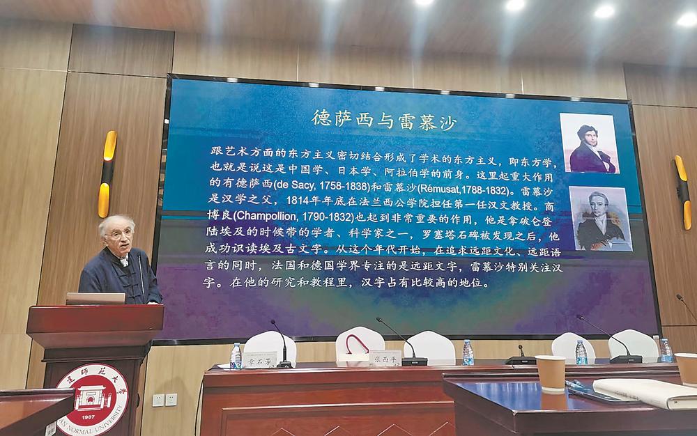 世界汉语教育史研究学会副会长、法国著名汉学家白乐桑在交流观点。