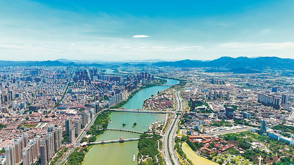 航拍九龙江两岸的漳州城区。右侧的漳州高新区正处在大开发、大建设阶段。