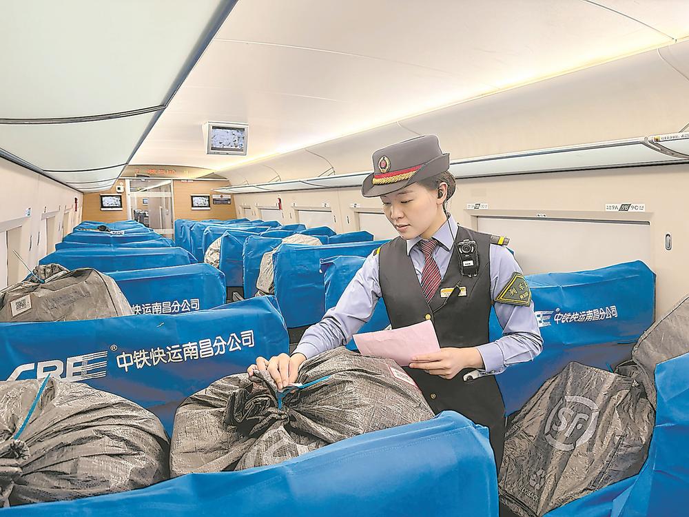 为畅通“双十一”包裹运送渠道,中国铁路南昌局集团有限公司在G326次、G2278次等多趟热门高铁列车上预留7号车厢,打造“高铁快运专列”,助力包裹更快、更稳送达。