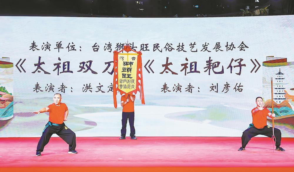 海峡两岸中华武术大家练活动中,台湾武者在台上表演。