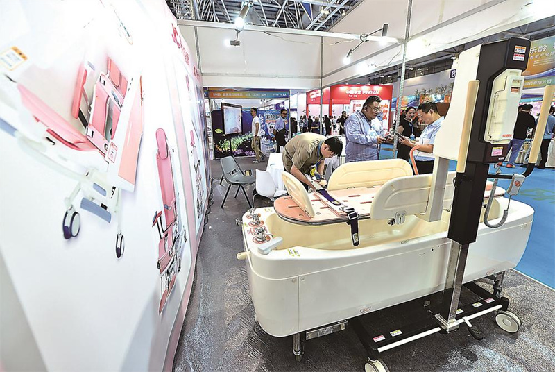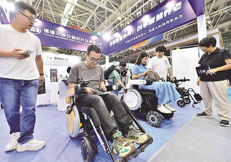 辅助康复运动机器人吸引参观者体验。张斌 摄