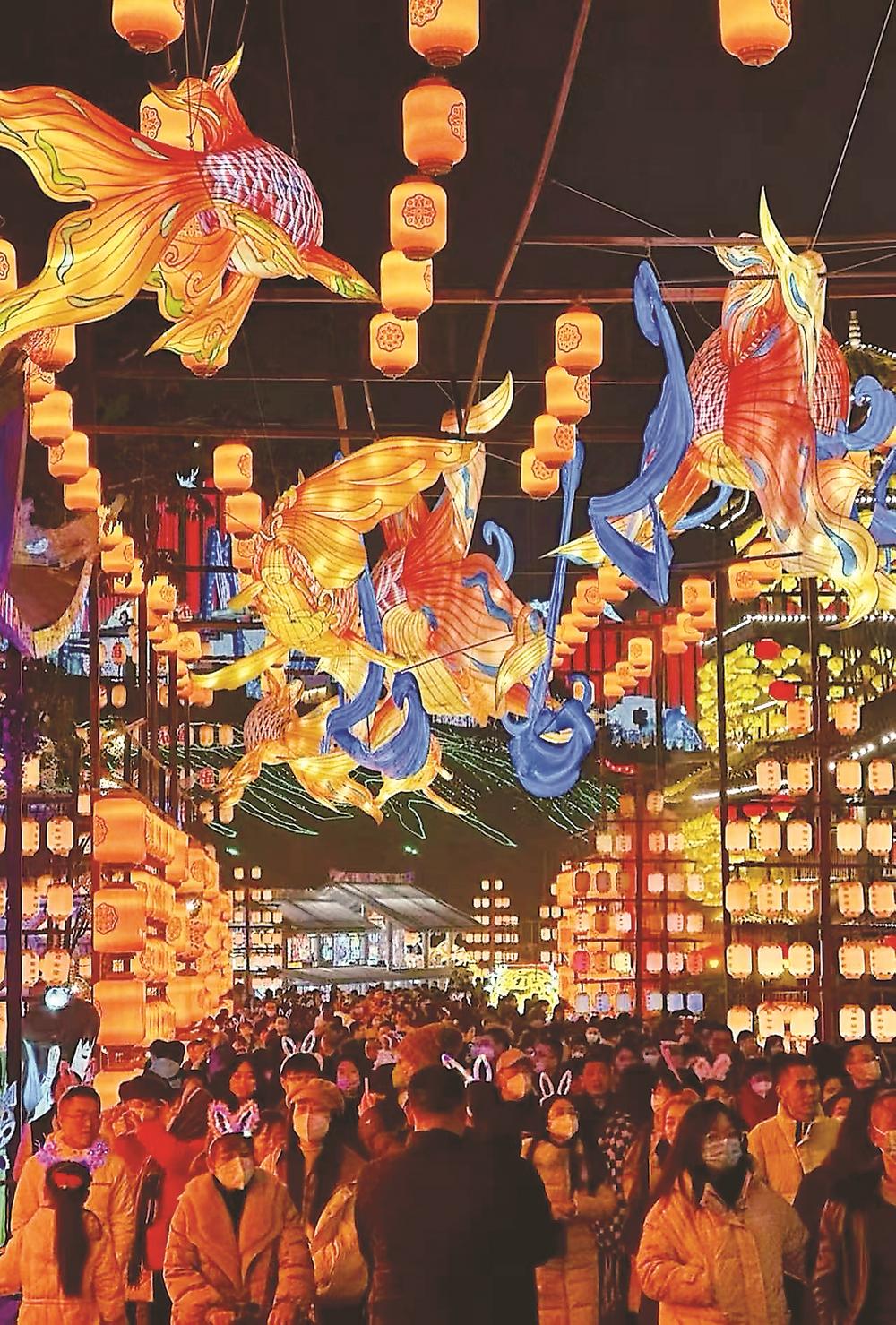 厦门园博苑的灯会核心区占地达270亩,设有31组大型主题灯景,水岸灯火交织,成了市民和游客夜间打卡的头号地标。屿见闽南主题景区里,千灯齐升,“白鹭女神”凌空飞舞,百来个NPC(广泛应用于文旅场景,指由真人扮演以增强游客沉浸式体验)盛装亮相,把闽南年味玩成了一场可以品尝、可以触摸、可以穿戴的沉浸式盛宴。该景区副总经理黄涛说:“我们要让游客不再只是站在边上看,而是升级为非遗传承的参与者。非遗只有在生活的烟火气里,才能绽放出新的光彩。”