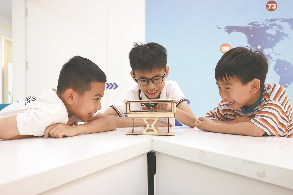 27日,在位于福州市仓山区的中科格致STEAM科技研学馆,学生在老师的指导下体验科普教育。近年来,仓山区积极推进教育数字化转型和人工智能与教育教学的深度融合,推动智慧教育建设,努力培养更多具有创新能力和实践能力的高素质人才。(通讯员 王旺旺 摄)