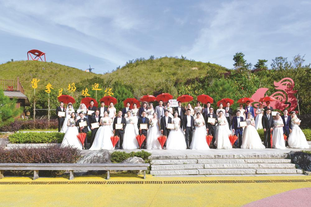 为大力倡导移风易俗、婚事新办的社会文明新风,引导更多婚龄青年树立健康的婚姻观、价值观和消费观,20日,“爱在鸳鸯草场”——宁德市第四届青年职工人才文明集体婚礼在柘荣举办,百对新人在声声祝福中携手步入婚姻的殿堂。(谢燕斌)