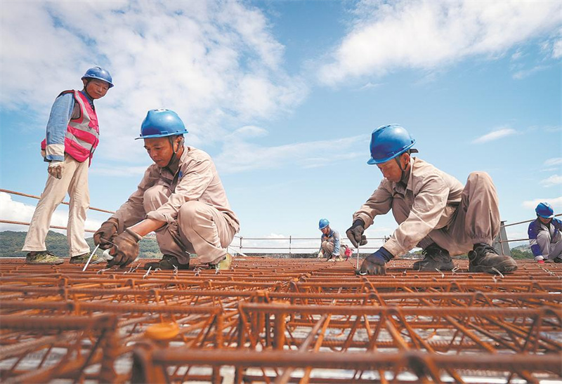 3日,福州官坂220千伏变电站建设现场,数十名电力施工人员在对220千伏配电楼的基础和电缆沟开展模板安装工作和拼装焊接作业。国庆中秋假期,国网福州供电公司14个主网工程不停工,324名建设者坚守岗位。(通讯员 陈蒸 柯俊明 摄)