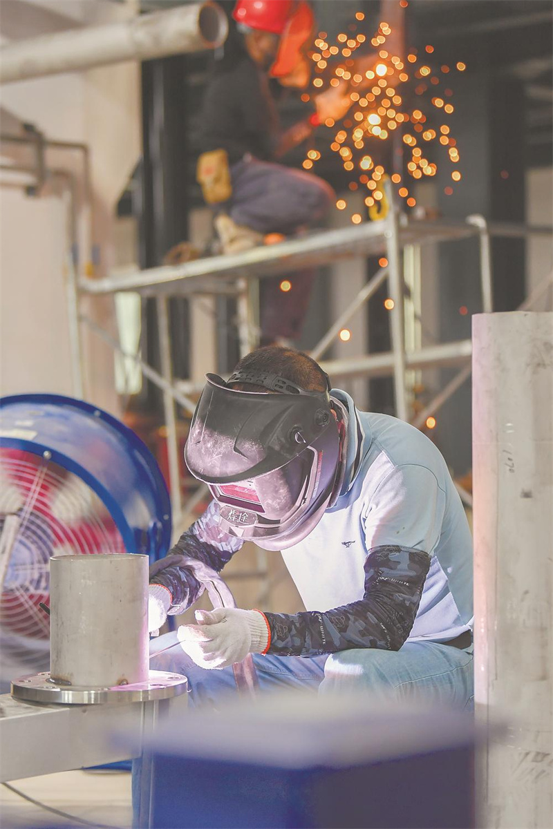 国庆中秋期间,位于罗源湾开发区的福建洲凯新材料有限公司厂房里,技术人员在安装设备。福建洲凯高纯材料加工新建项目总投资30亿元,投产后,可年产4万吨高纯净合金材料。(刘其燚 高坤颖 摄)