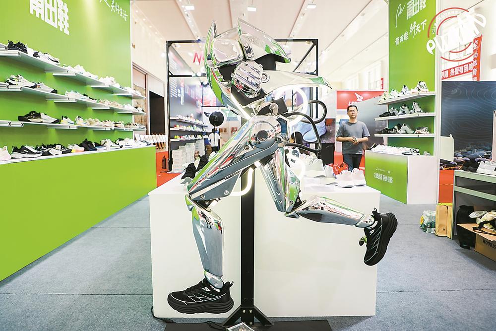 8日,在2025莆田鞋业交易博览会暨莆田鞋品牌供需选品会上,机器人模特动态展示运动鞋穿着效果。