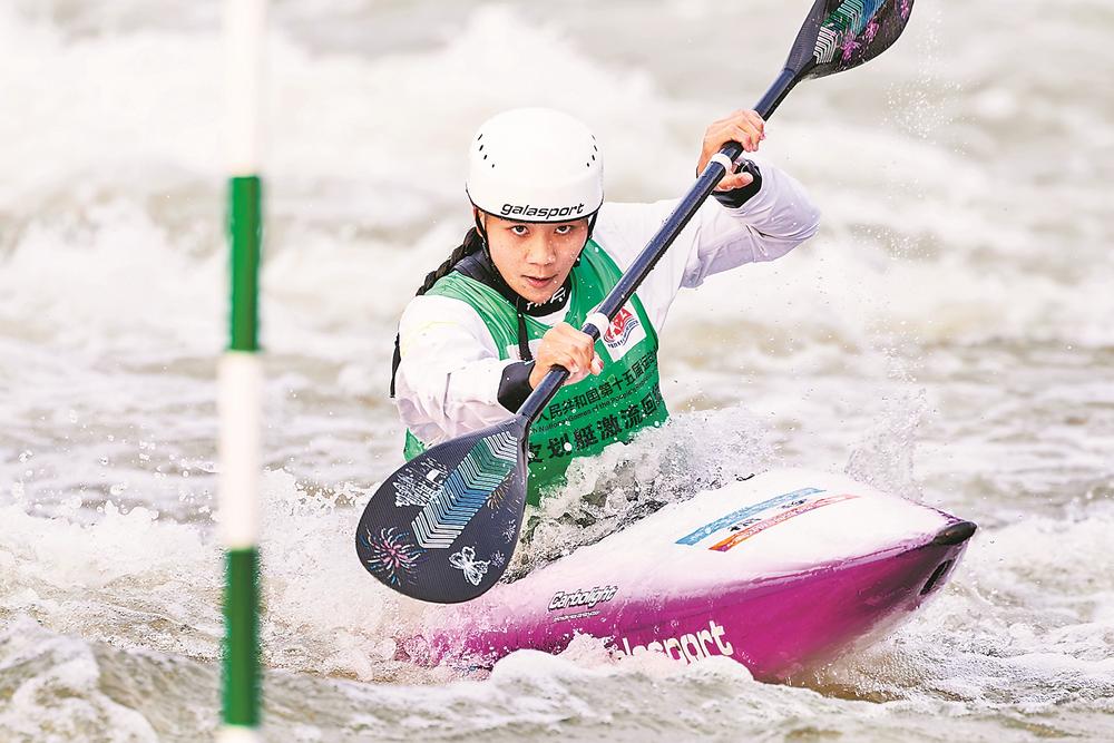 谢雪婷在皮划艇激流回旋女子单人皮艇比赛中获得银牌